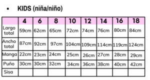 TABLA DE MEDIDAS