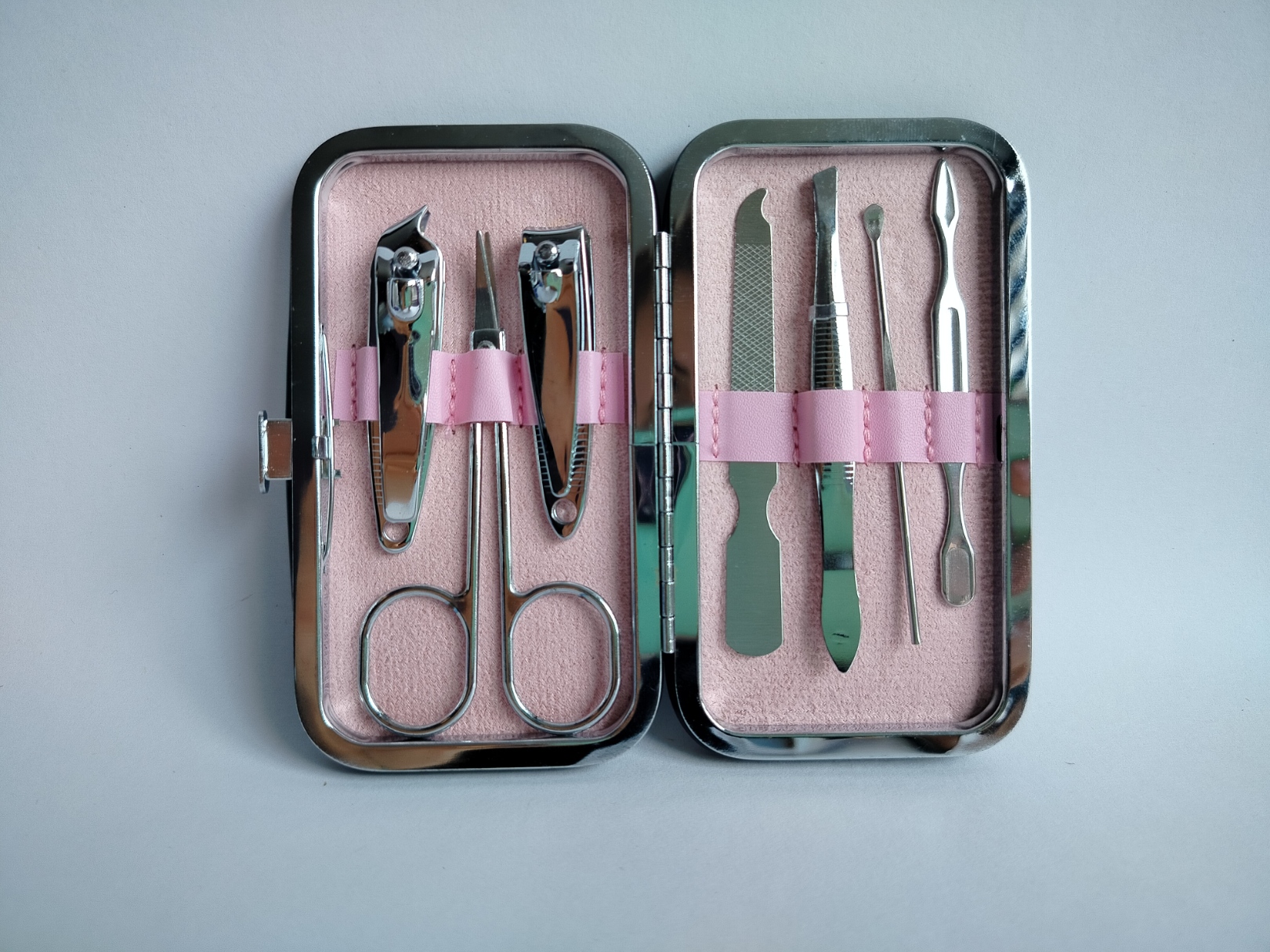 El kit de manicura y pedicura viene con un estuche portátil que se abre fácilmente, al cerrarlo las herramientas se acomodan perfectamente en su estuche. También es muy liviano, por lo que puede llevarlo fácilmente a todos lados o empacarlo para llevárselo de viaje.